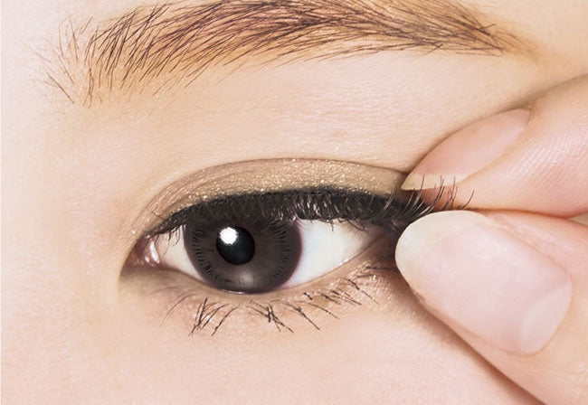 Gently peel the false eyelashes with finger tips from the outer corner of eye.